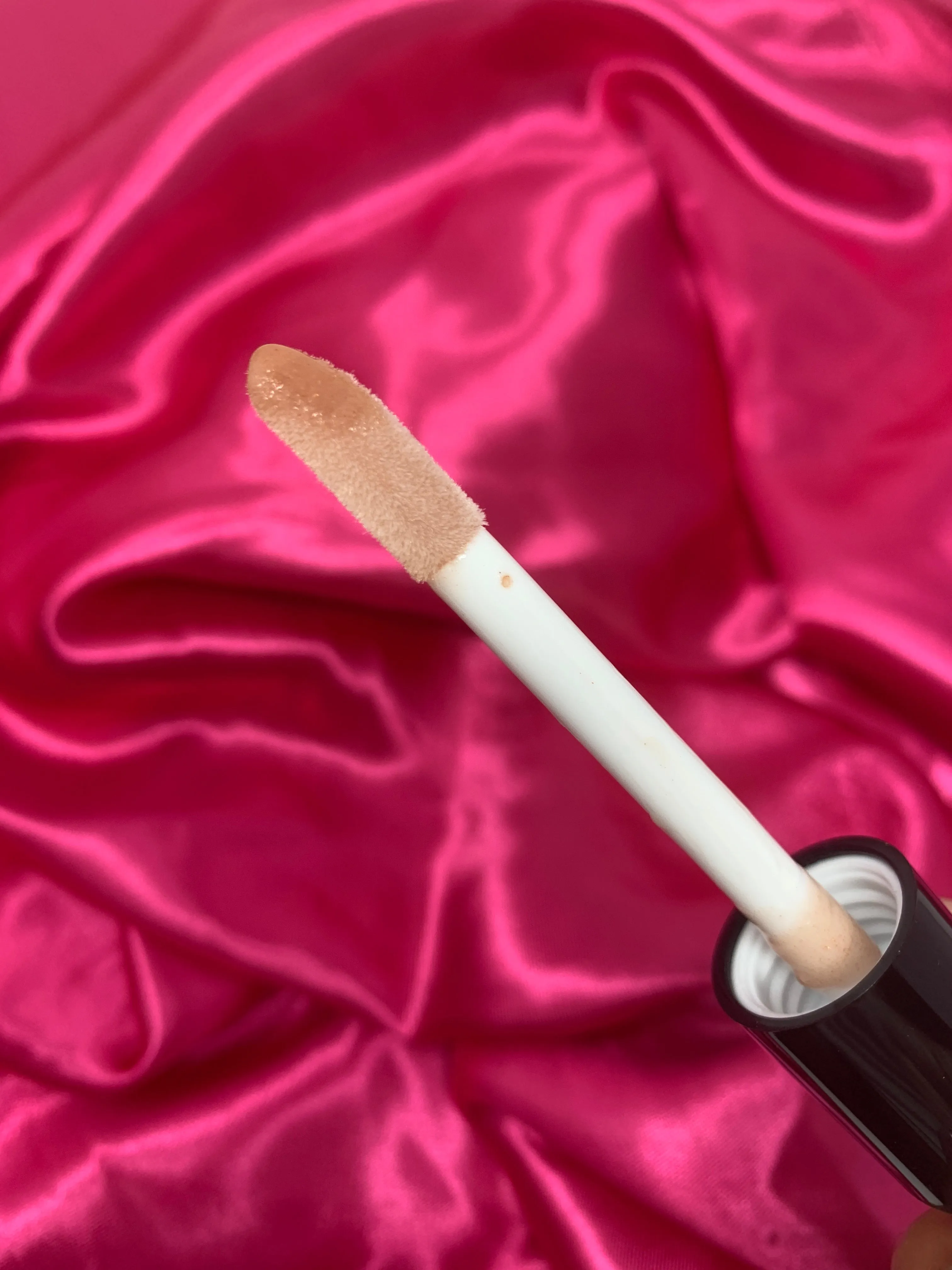 - Brown sheer lip gloss w/ a rose gold shimmer
