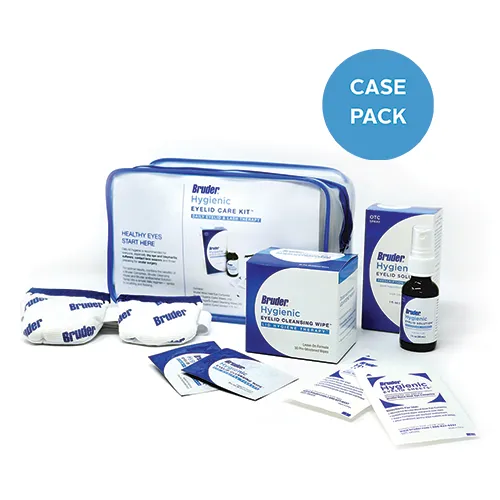 The kit brings key lid hygiene components together in one convenient package: Patients receive the #1 Doctor Recommended Bruder Moist Heat Eye Compress, along with Bruder Hygienic Eyelid Cleansing Wipes and Bruder Hygienic Eyelid Solution (0.02% pure hypochlorous acid spray) and Bruder Hygienic Eyelid Sheets.
