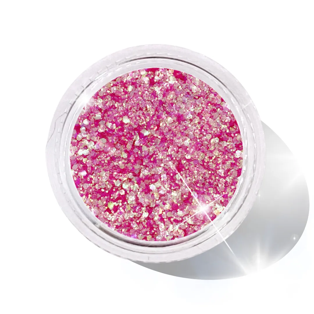 Medusa's Make-Up Glittergasm glitter powders are truly like galaxy dust! This cosmetic grade mix of micro sparkle and chunky sized glitter particles can be great for party makeup, festival makeup and cheerleader makeup and roller derby. Can be applied to eyes, lips and face.