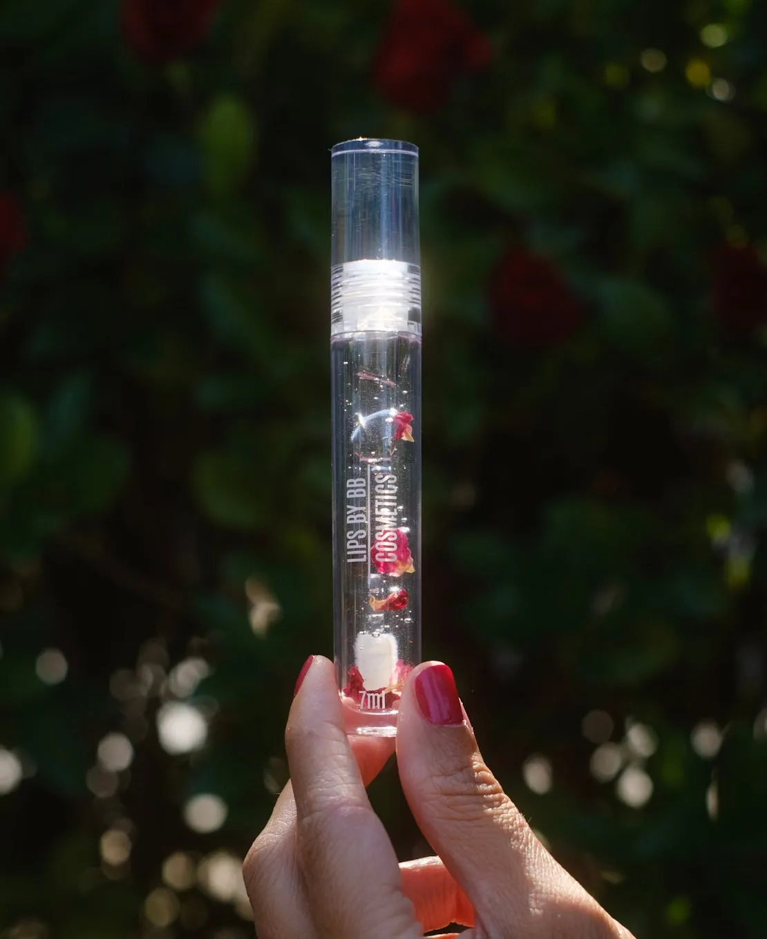 This classy, clear rose gold🌹✨ shimmer lip gloss is infused with a sweet blend of natural oils including floating dried rose petals 🥀