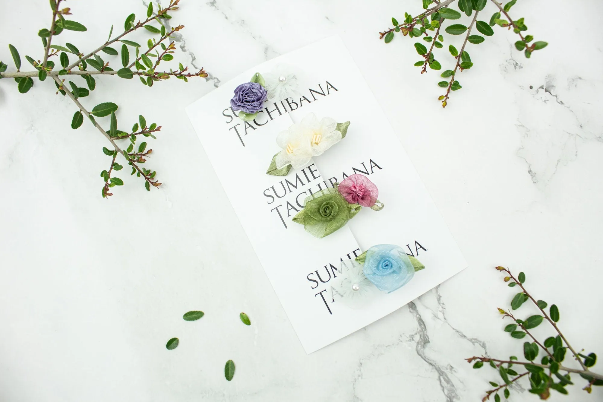 Mini Floral Hair Clip Set of 4 Purple Cream Green Blush Light Blue