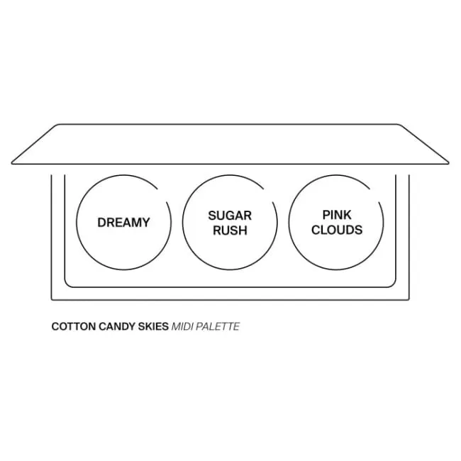 With its compact size and full mirror, blush with delight using the sweet and sparkly Cotton Candy Skies Midi Palette.