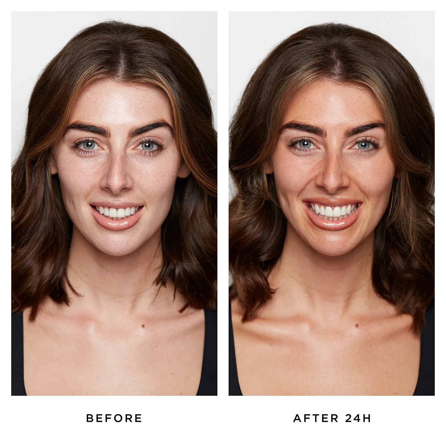Customisable tanning concentrate enriched with hyaluronic acid.