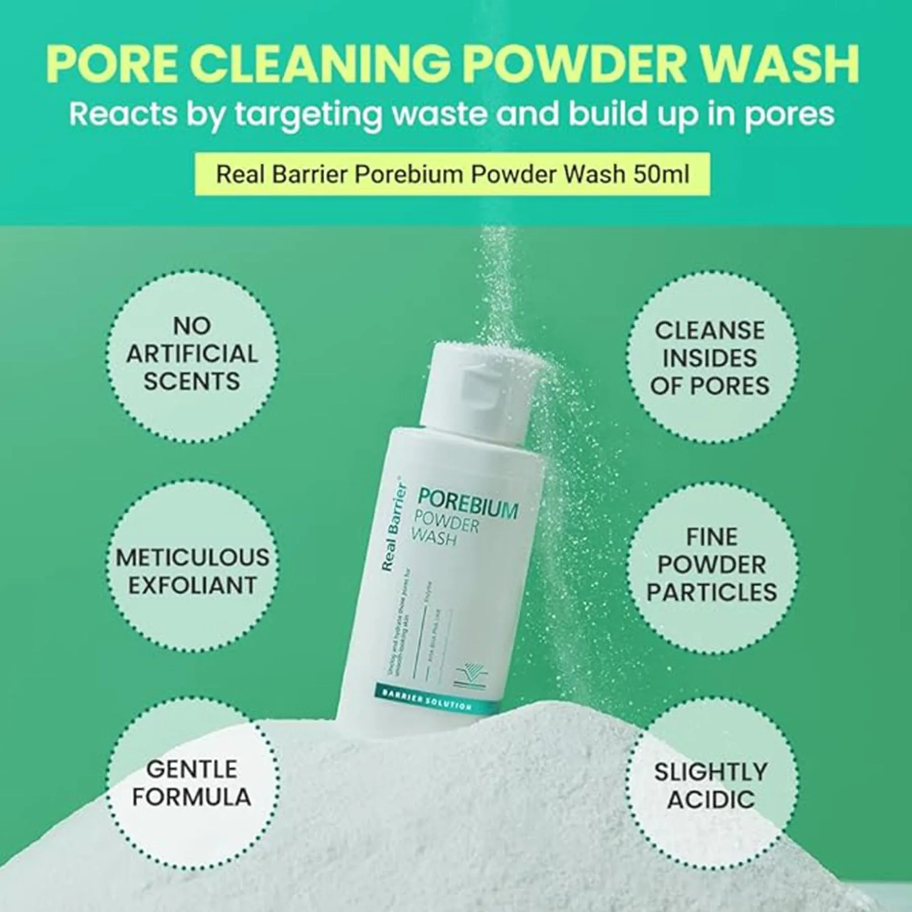 Reveal smoother, clearer skin with the Real Barrier Pore Bium Powder Wash, your go-to solution for effective cleansing and pore care!