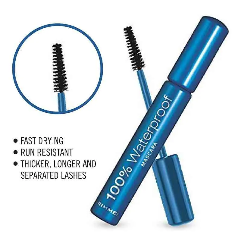 Rimmel London 100% Waterproof Mascara is a stronghold mascara that adds length and volume to your lashes while withstanding water, rain, sweat and tears. This waterproof formula provides lashes with full coverage, coating hairs from the root to the tip, while remaining in place without fall out or smudging throughout the day. For lashes that will stay defined, lengthened and volumized as you splash and sweat, Rimmel 100% Waterproof Mascara is your go-to.
