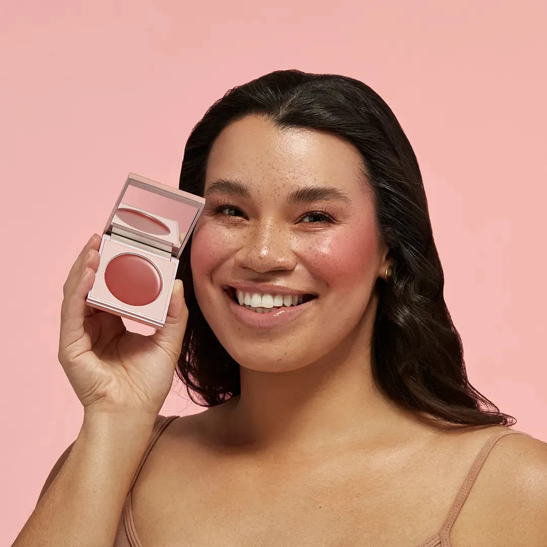 Using your favorite blush brush, dab cream blush onto the apples of the cheeks for a radiant glow. Layer your favorite blush on top for an extra pop of color