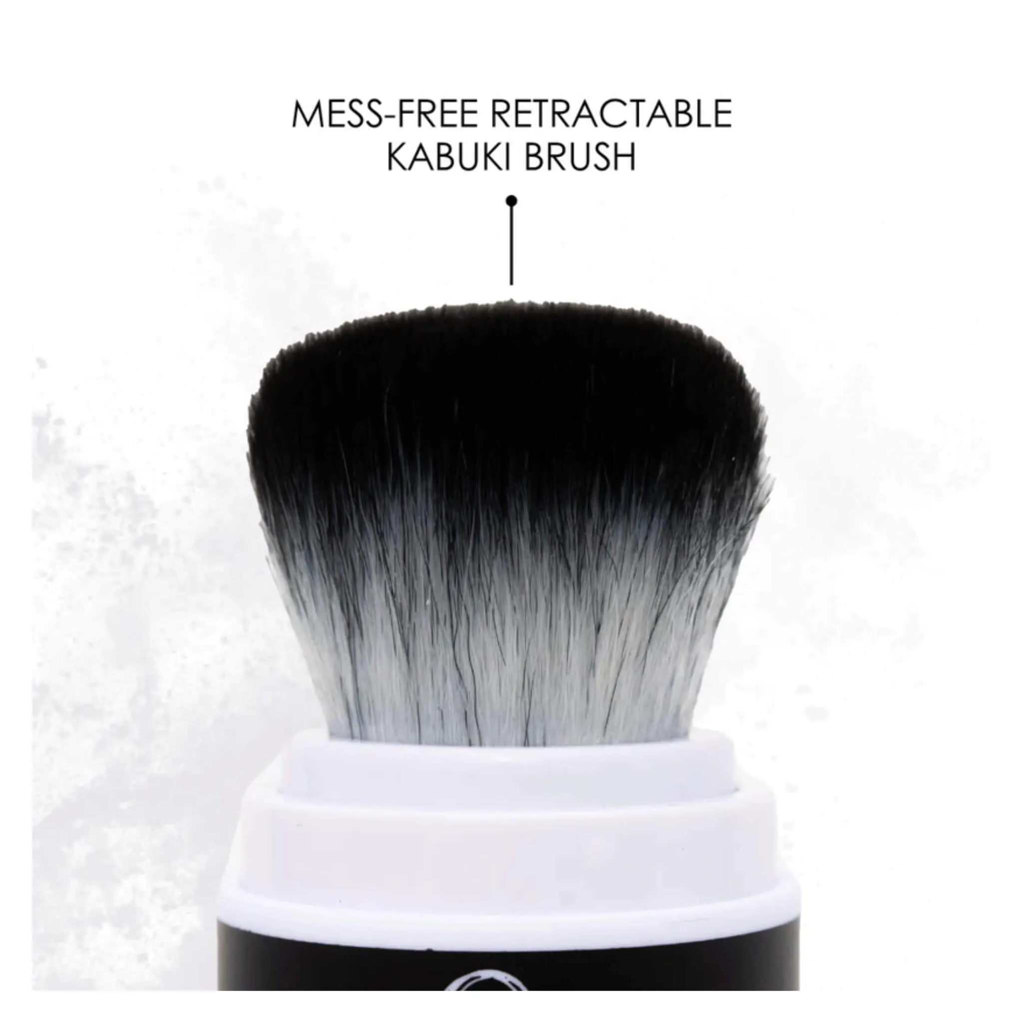 Absorbs excess underarm, breast and groin sweat in a portable brush applicator