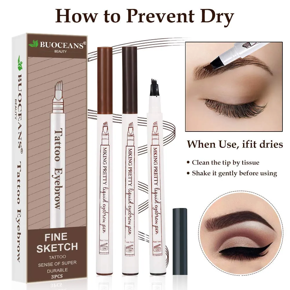 The fork tip tattoo brow ink pen creates hair-like strokes with ease for filled, natural-looking eyebrows - New designed multi-prong tip creates the look of naturally filled eyebrows.