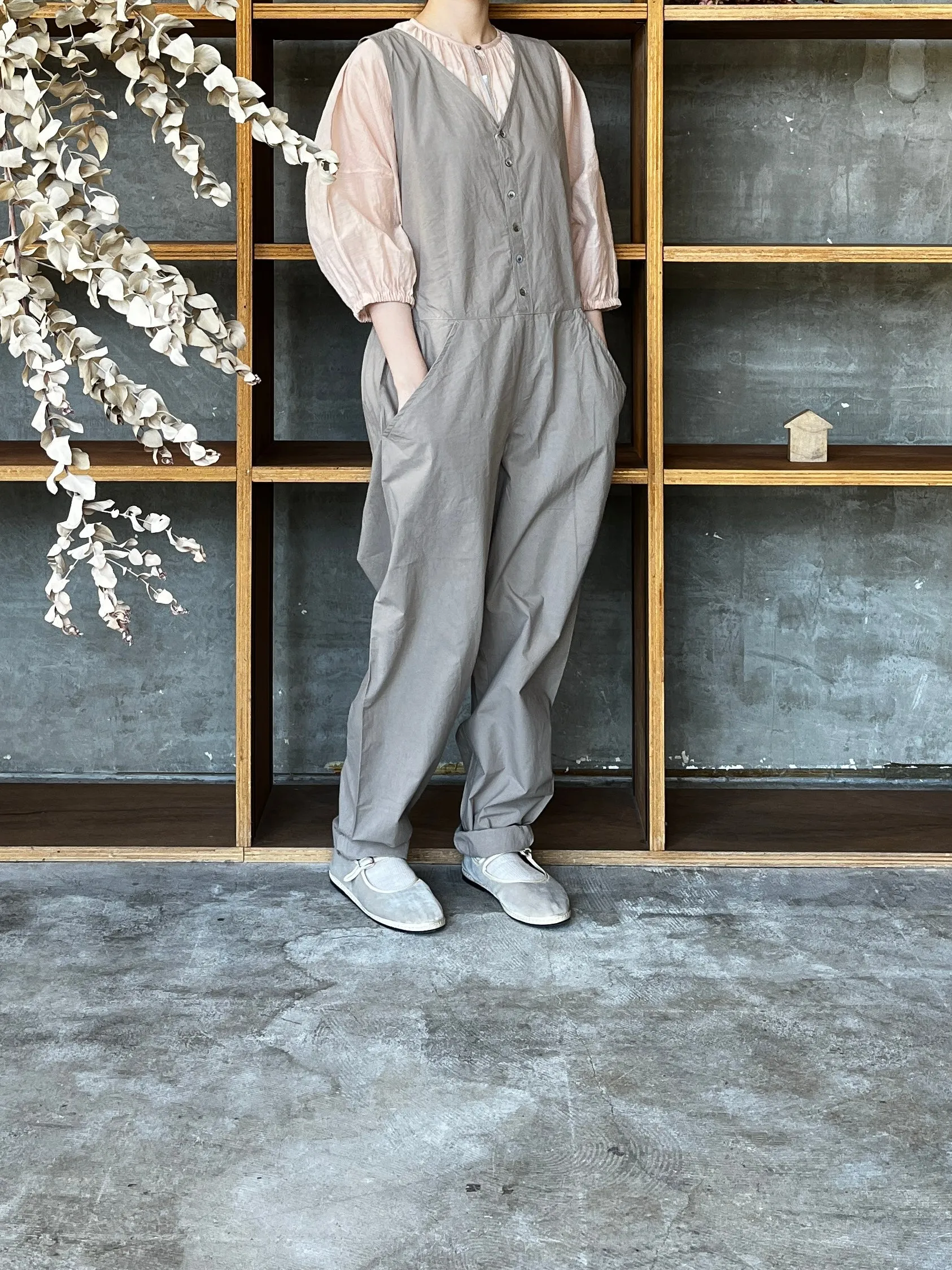 後ろウエストゴム入り、肩ひも三段回に調節可能